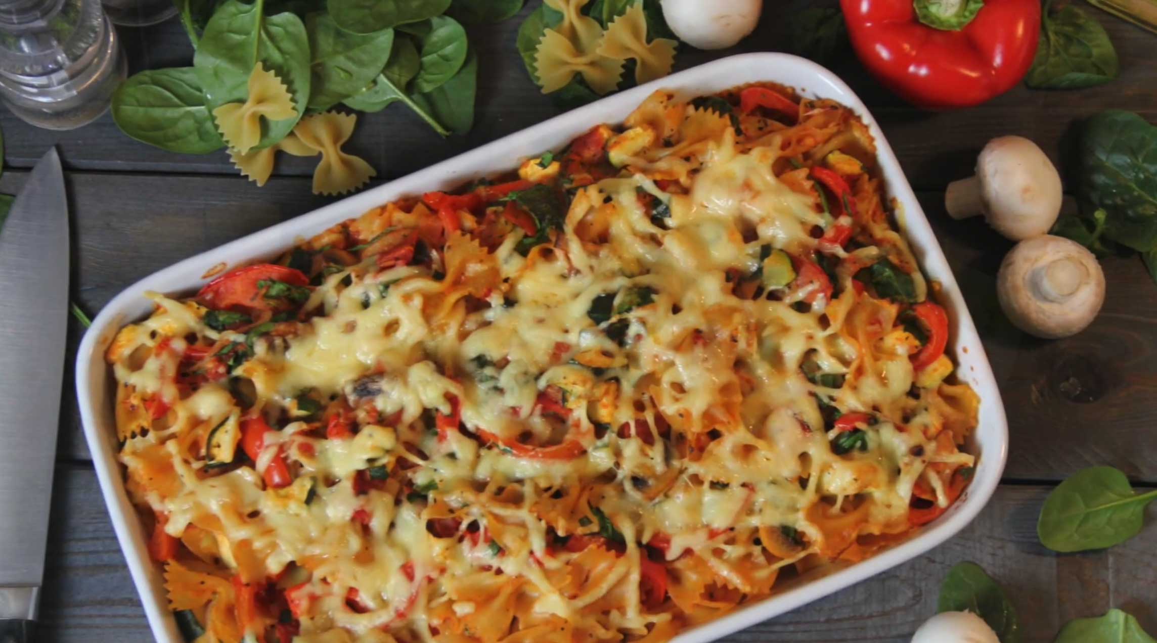 Ovenpasta met paprika, courgette en spinazie