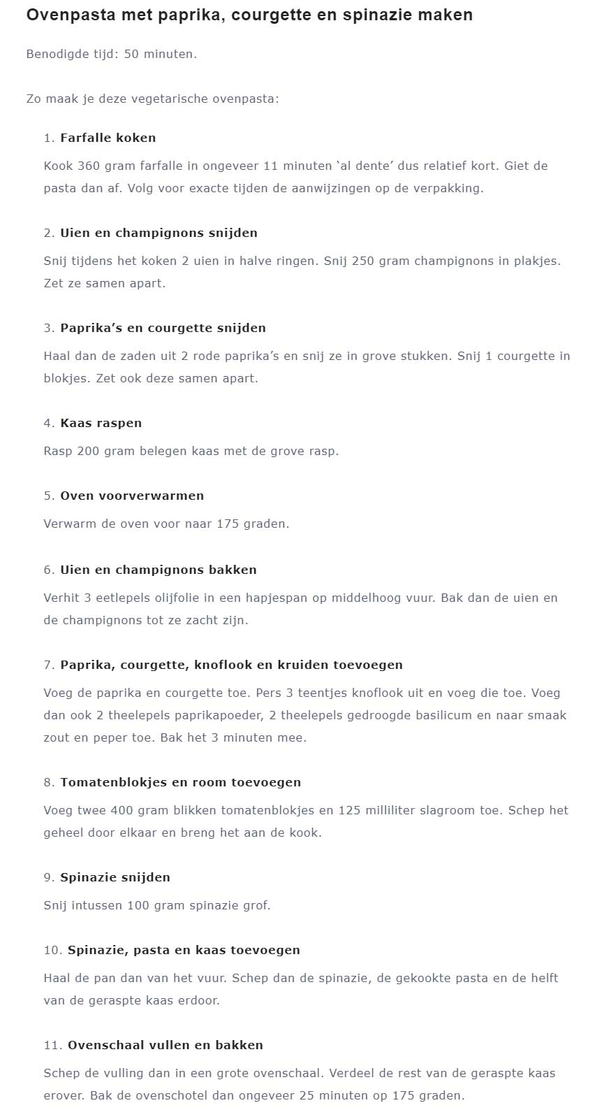 Ovenpasta met paprika, courgette en spinazie